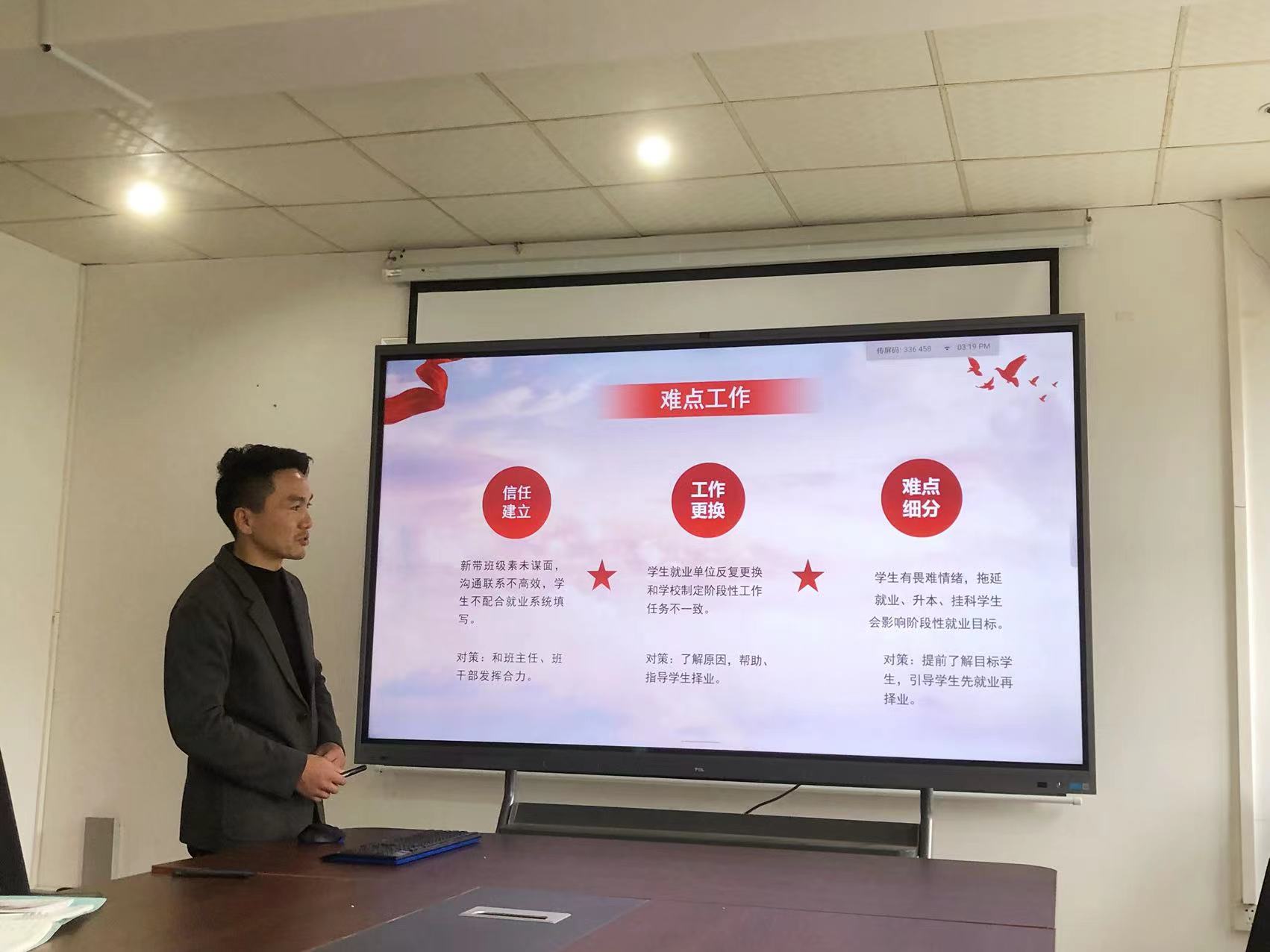 艾华武副书记以“日常工作落细处,专项工作争出彩”为主题,提出“两心”的育人方法。一是履责尽责,学生日常管理工作需操心。重视主题班会、团日活动、心理健康教育活动、网络思政教育等育人手段;加强宿舍管理,积极下沉宿舍,打造文明宿舍;严格请假管理,实事求是;踏实做好学风建设,加强课堂巡课,有效处理突发事件,发挥教育机智。二是积极作为,专项工作要用心。分别从学院学生党建工作、学院团委、院学生会、院勤工助学服务站、学院心理辅导站、学院易班工作站6个学生机构细谈有效开展各专项工作的具体举措,要用心开展工作,积极思考,将创新想法融入工作中,凝练发展工作特色,把各专项工作做出彩,唱响学院品牌。