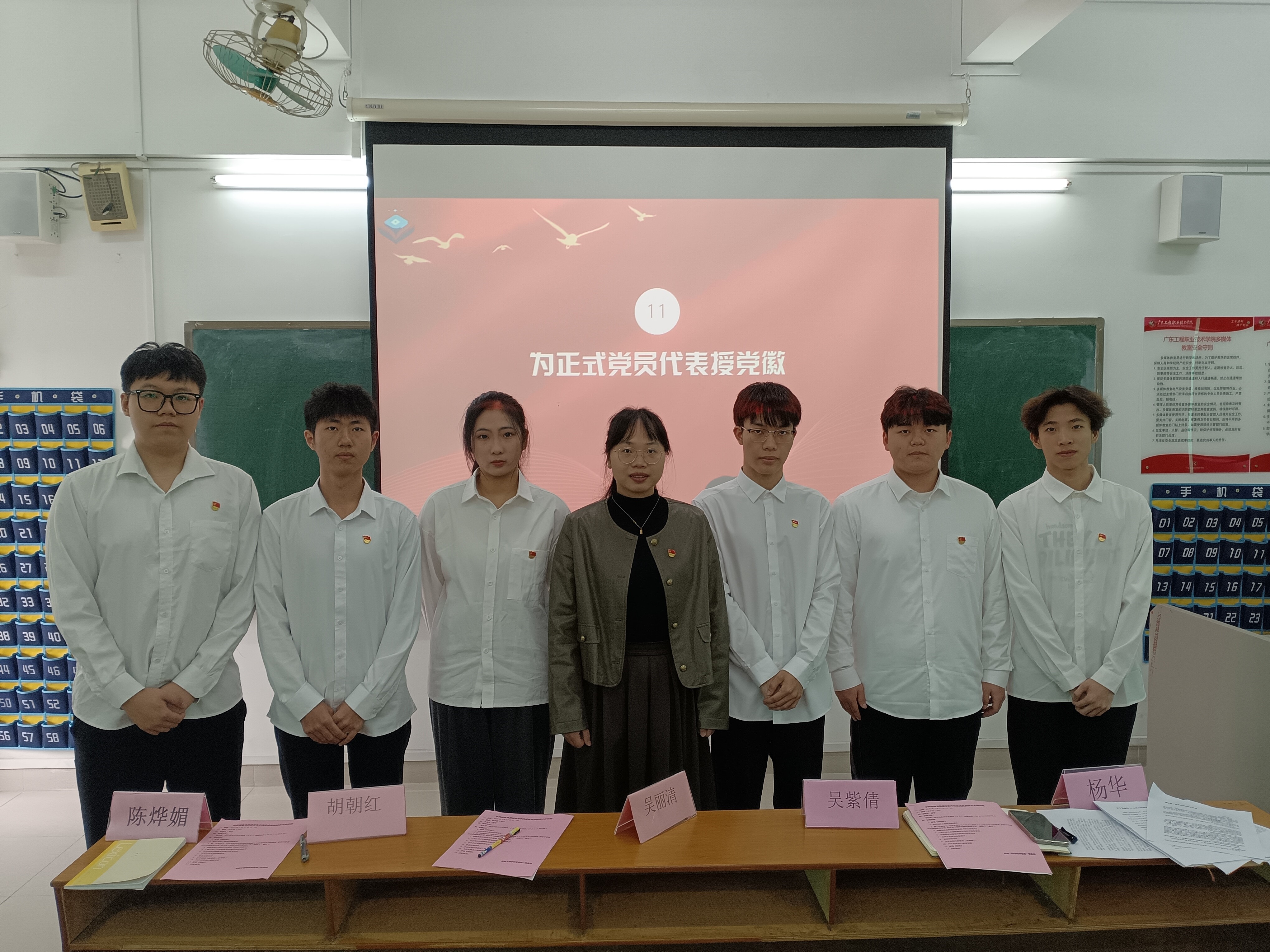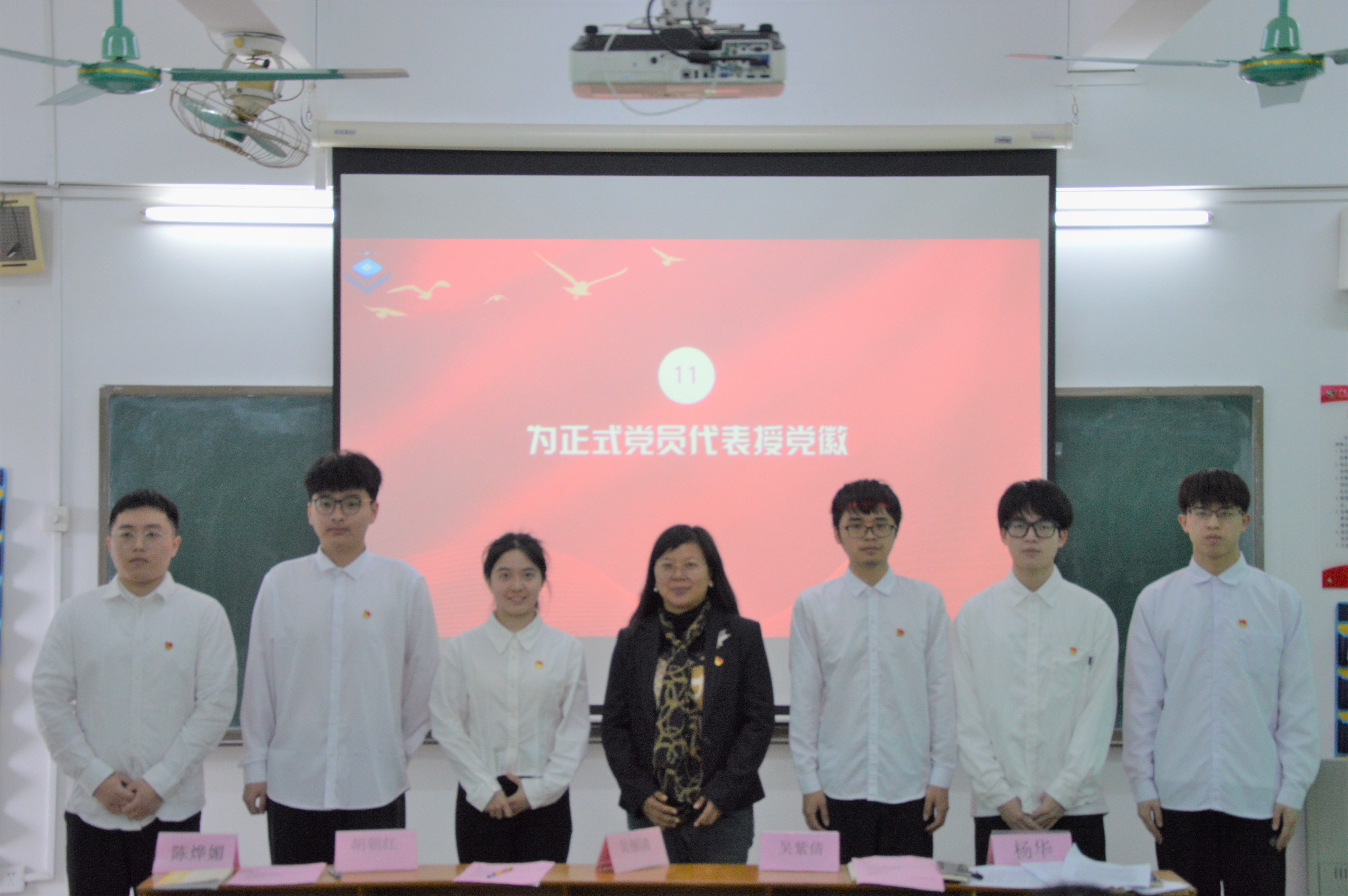会上,姚巍等12名预备党员依次上台向大会宣读《转正申请书》。各入党培养人依次对培养对象的思想觉悟、生活作风及学习情况进行综合评价,并对是否同意培养对象如期转正发表意见。同时参会同志对预备党员进行民主评议,全体正式党员进行无记名投票表决。杨华老师宣读表决结果,同意姚巍等12名预备党员按期转正,吸收为正式党员。正式党员代表张赞柳表示将以实际行动践行入党誓词。胡朝红老师和吴紫倩老师为正式党员授予党徽,并给予勉励。