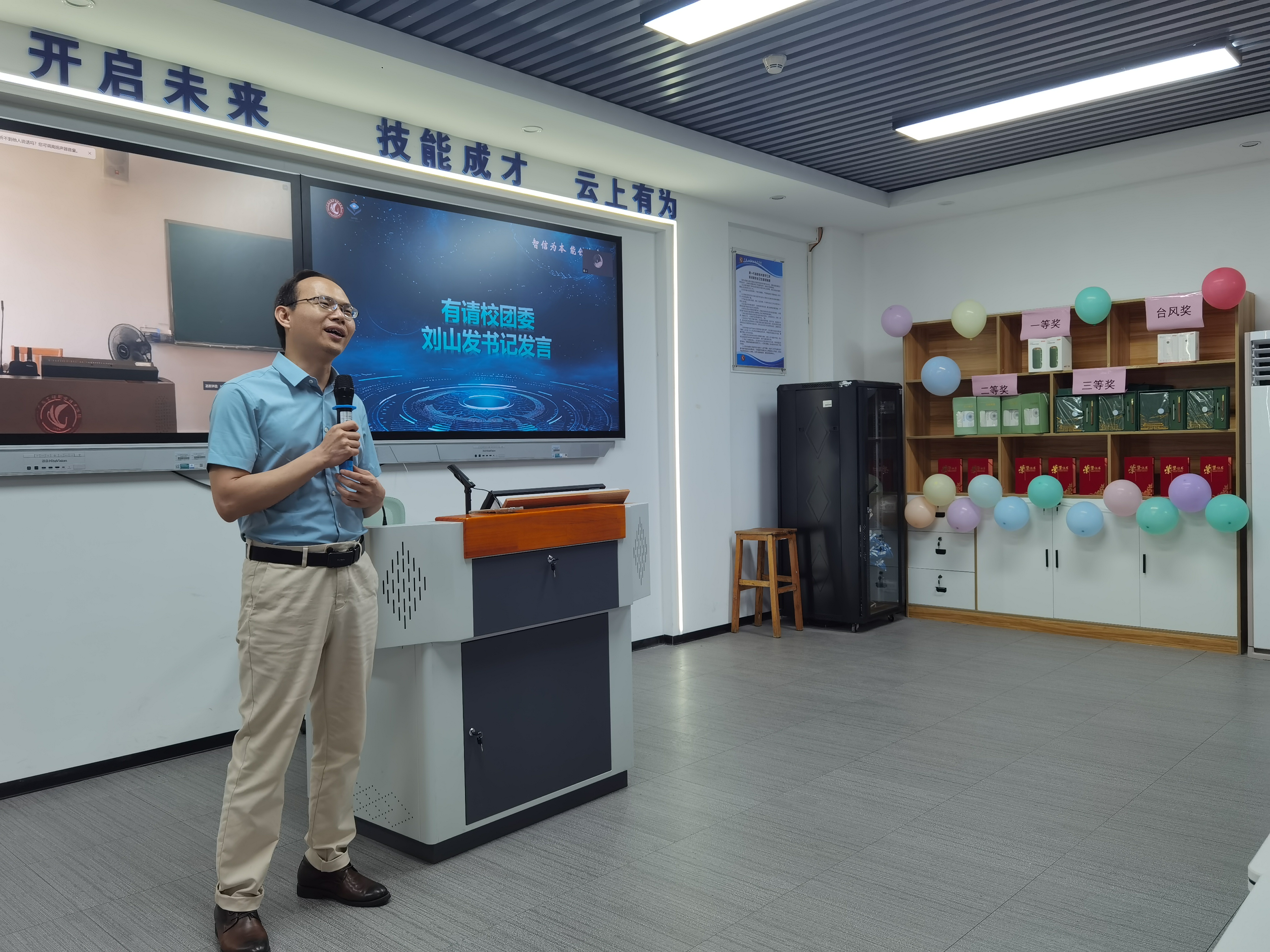 开幕式上,刘山发发表致辞,他介绍学校科技学术节系列活动,是为了进一步激发学生创新意识,锤炼实践能力,为国家高质量发展储备青年科技力量。 以大赛为契机,向青年学子提出三点寄语:一是提高站位,深化对科技创新认知。他回顾人工智能技术的迅猛发展,勉励学生主动拥抱科技变革浪潮,将创新意识融入成长基因,争当科技强国建设的主力军。二是夯实基础,筑牢专业根基。要立足当下,扎实学习专业知识,在思考与实践中锻造核心竞争力,让科技创新成为“身体里的DNA”,为未来发展积蓄“十年磨一剑”的持久动能。三是以赛促学,勇攀科技高峰。参赛学子要将比赛视为起点,通过总结评审意见、借鉴优秀作品,打通学习研究中的难点堵点,做到“以赛促教、以赛促学、以赛促研”,鼓励学生敢于突破传统思维,在探索新理论、新领域中展现青年担当。
