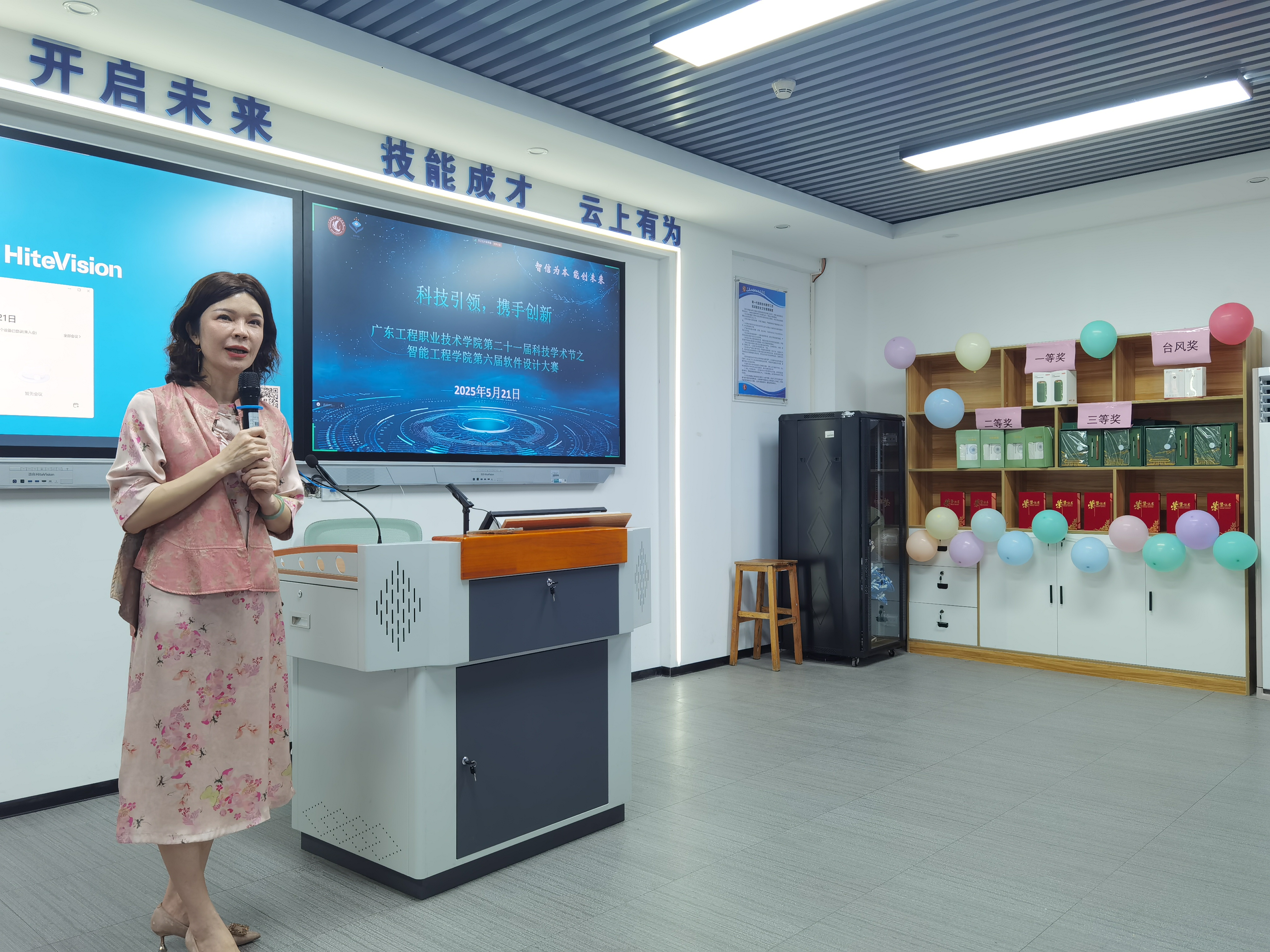 蓝畲遗风数字展厅、羽毛球健康数据管理系统、微信小程序等创新项目惊艳软件设计大赛现场,一群00后开发者正在用代码重塑世界。2025年5月21日下午,由智能工程学院承办的第二十一届科技学术节之第六届软件设计大赛火热开赛。学校团委书记刘山发、智能工程学院党委书记吴丽清、学院副院长徐丽新及评委老师出席活动。