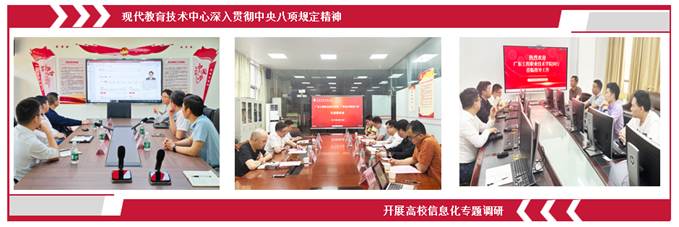 为深入贯彻落实党中央《关于在全党开展深入贯彻中央八项规定精神学习教育的通知》精神,推动学习教育走深走实、见行见效,近日,由现代教育技术中心主任林明方带队,先后深入到广东技术师范大学、广东建设职业技术学院、广东财贸职业学院、广东科贸职业学院等兄弟院校,围绕智慧校园建设重点工作开展学习调研,拓展数字化治理新思路。
