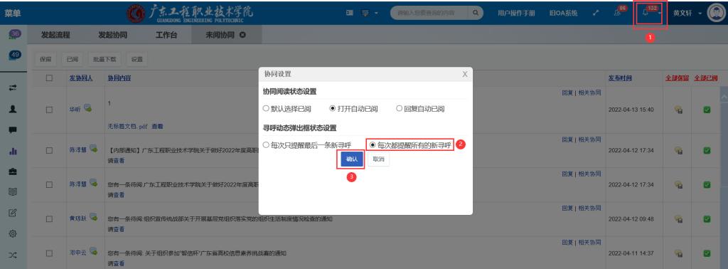 3.协同不能主动弹出协同信息提示窗口,需要从信息交流-已收协同中查看,或者点击