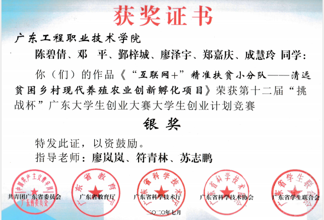 加入了校机构易班发展中心,在校机构作为一名新干事期间积极参加校内各项活动,曾代表学校去参加广东省易班发展中心的毕业季H5比赛,并荣获省一等奖。而后担任校易班发展中心的站长,负责学校学生工作部安排的各类活动,组织过各类校级比赛和活动,让全校师生积极参与;代表学校参与广东省“学四史,守初心,创未来“研学实践短视频大赛,荣获省级三等奖;带领师弟参与”广东高校大学生讲南粤故事音视频作品大赛“等各项省级比赛均有获奖。毕业后专升本成功,现在读本科生。