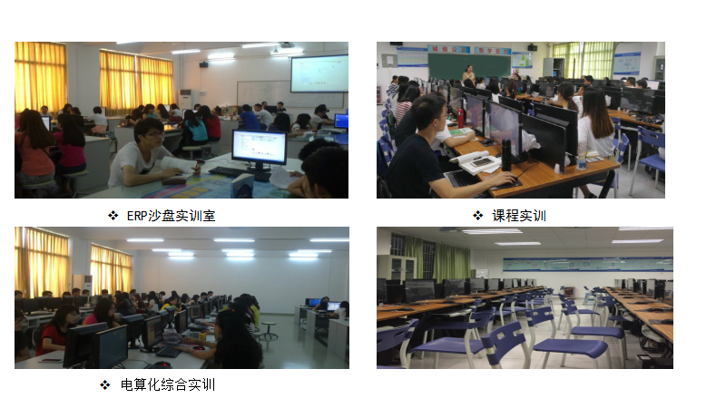 大数据与会计专业积极开展校企合作,践行“工学结合”、“理实一体化”教学,着力培养学生的实践能力。校内实训基地有财经(省级)综合实训基地、业财一体化实训基地、会计综合模拟实训室,ERP沙盘实训室等;同时,注重产教融合、校企共育;积极与金蝶国际软件集团、广州盈丰财税代理有限公司、广州亿账柜信息科技有限公司、北京东大正保科技有限公司等二十多家企业合作搭建起协同育人平台,建立了能满足学生轮岗实训、岗位实习等要求的校内外实习实训基地。