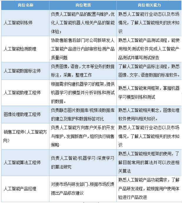部分人工智能相关就业岗位。