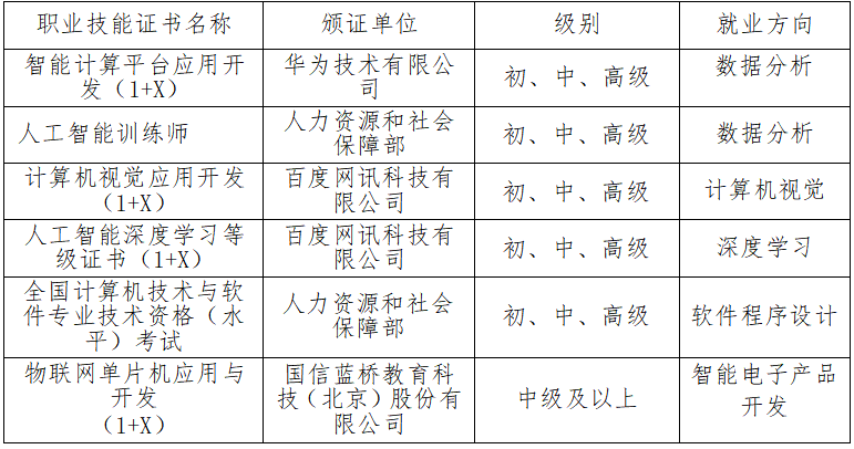 人工智能数据服务、计算机视觉技术应用、机器学习技术应用、深度学习应用开发、智能语音处理及应用开发、人工智能系统部署与运维。