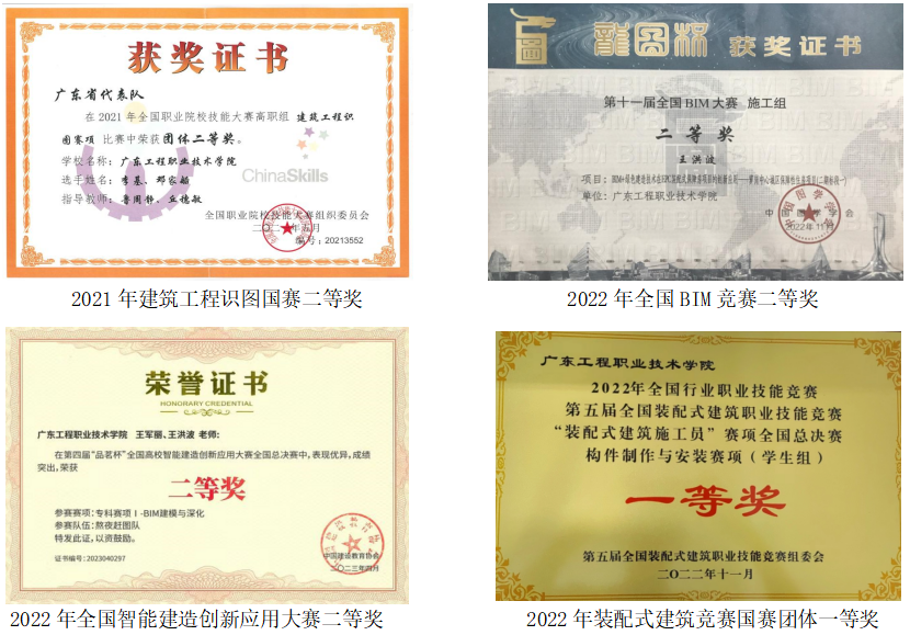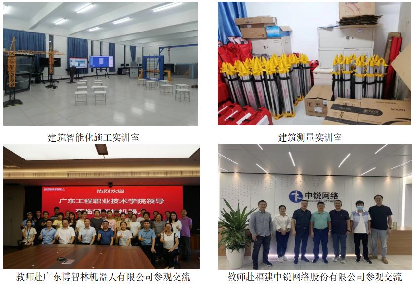 本专业拥有教育部认定的建筑工程技术专业(群)“双师型”教师培养培训基地和广东省级实训基地各1个,包括建筑施工安全教育体验馆、装配式建筑一体化实训室、建筑智能化施工实训室、建筑测量实训室、BIM技术应用教学实训室等实体和虚拟实训室,与广东博智林机器人有限公司、福建中锐网络股份有限公司、广州云蝶科技有限公司、广州市设计院集团有限公司等企业共建校内外实训基地多处,与企业共建博智林凤云智能建造产业学院,满足学生实训、实习的需求。拥有土建八大员培训考点和中国图学会BIM技能等级考证点,制图员职业技能等级认定考证点,承办了2021-2022年度等3届广东省职业院校建筑工程识图竞赛等。