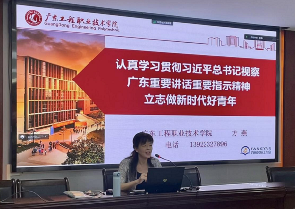方燕从深刻认识习近平总书记视察广东重要讲话重要指示精神的重大意义、一体学习领会习近平总书记对广东系列重要讲话、重要指示精神、深刻把握事关广东未来发展的全局性关键性重大课题、青年学生要践行新时代新征程新使命,为民族复兴做出新的更大贡献四个方面展开,进一步深化全体发展对象的思想认识,为全体发展对象在新征程中更好地履行职责使命指明了前进方向、提供了根本遵循。
