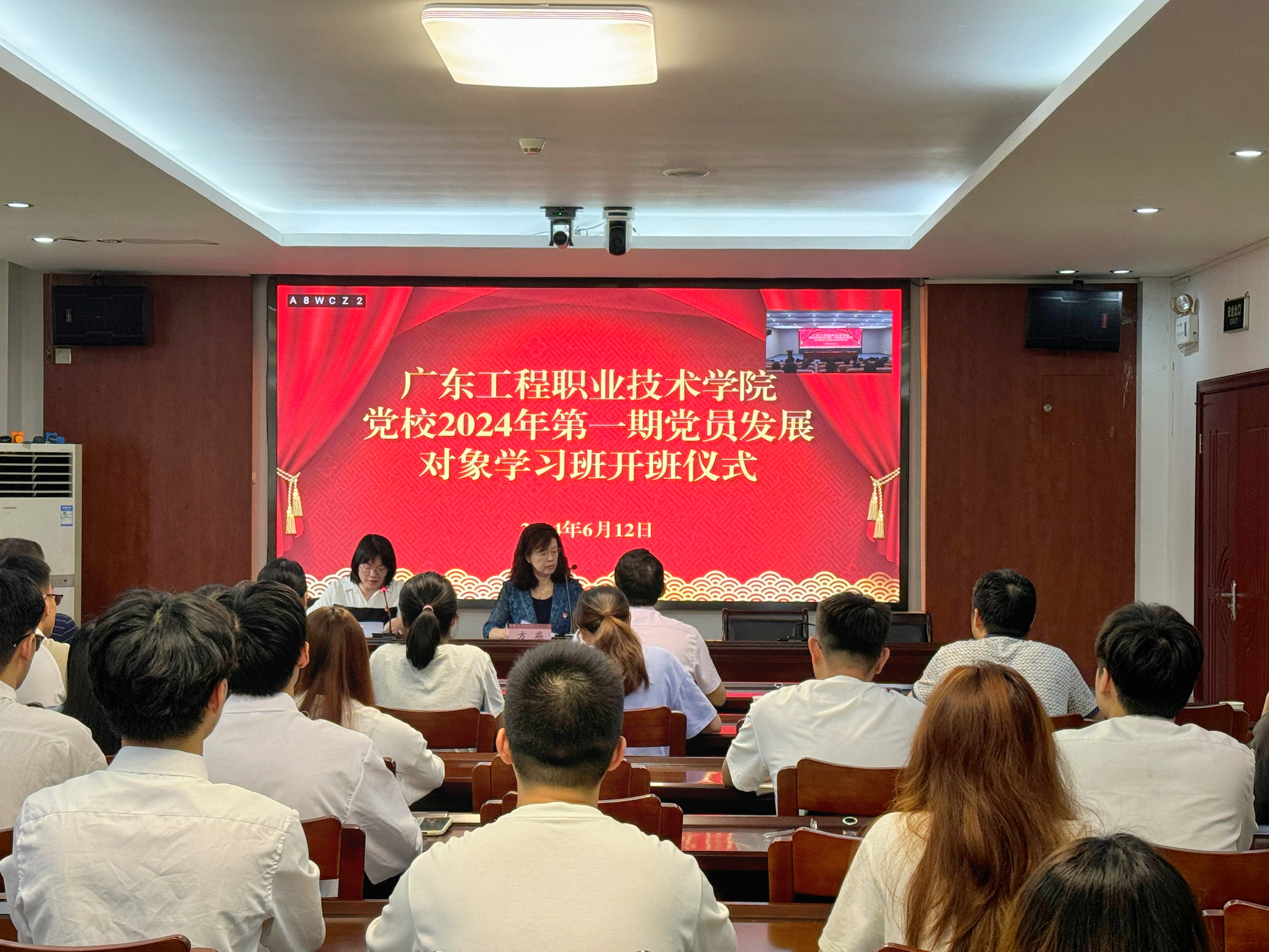 6月12日下午,学校通过视频连线方式在广州校区办公楼511室和省职教城校区办公楼报告厅举办2024年第一期党员发展对象学习班开班仪式。学校党委副书记、党校副校长方燕同志,各二级学院党委书记、副书记、专职组织员以及本期105名党员发展对象参加开班仪式。会议由组织统战部副部长佘细花主持。