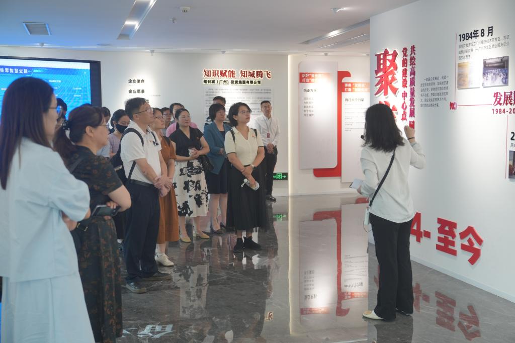 培训期间,培训班赴知识城开展现场教学。先后参观知识城集团党建先锋馆、中新广州知识城规划馆、广东粤港澳大湾区黄埔材料研究院,通过沉浸式学习“红色引擎驱动企业发展”的生动案例,进一步深化对新质生产力发展和广州现代化产业体系建设认识。13日下午,知识城产业园发展集团党支部负责人作企业党建情况介绍与经验分享。在分组研讨中,校企双方党员围绕围绕党建引领、科技赋能、实践育人等方面展开讨论,探讨如何深化党建联建、产教融合等方面合作的做法。